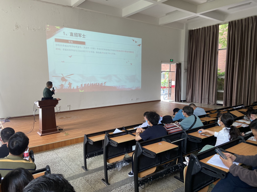 一直以来高度重视大学生应征入伍宣传动员工作,针对2022年下半年征兵,学院以大面积宣讲、小规模座谈、一对一谈话的方式致力于引导学生树立军人崇高、参军光荣的意识,在极力做好应征入伍工作的同时,加强学生国防教育。