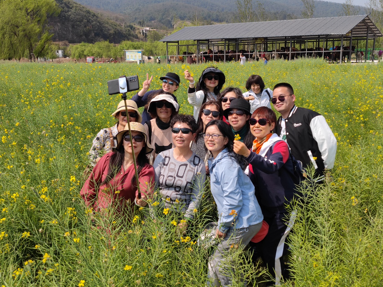 工会组织女职工到安宁金色螳螂川春游赏花,欢庆“三八”国际劳动妇女节。