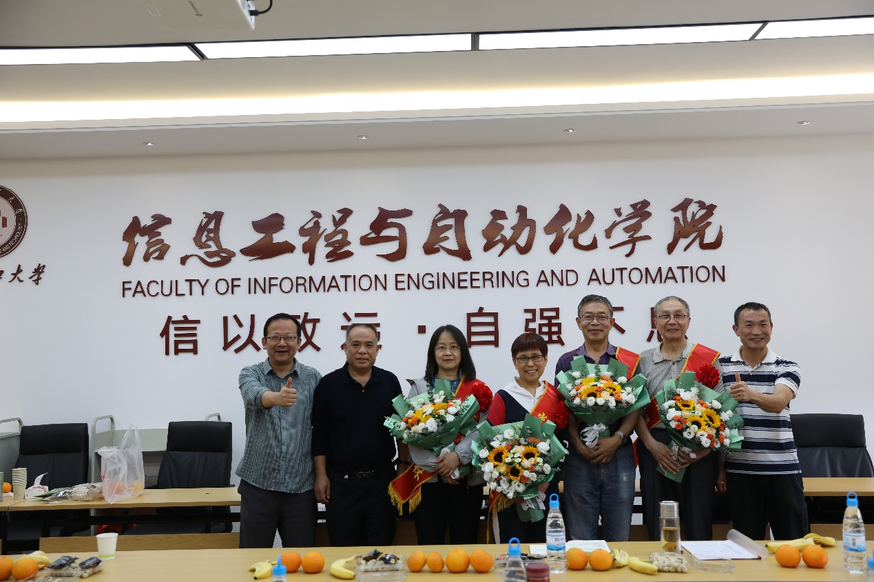 在信自楼237会议室为李振山、刘瑞敏、詹跃东、黎英、龙华、李一民、邹金慧、张云、文永进九位老教师举办荣退仪式。