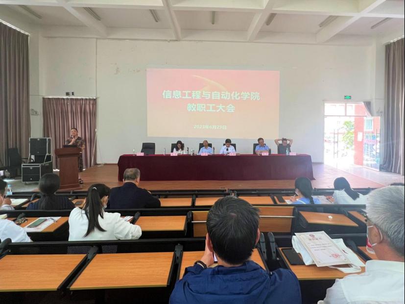 教职工大会。与学院全体教职工共同回顾过去一个学期学院工作所取得的成果和经验,发现剖析存在的问题,为下一步学院的发展制定新目标、部署新任务。学院党政领导班子和全院教职工参加了本次大会。