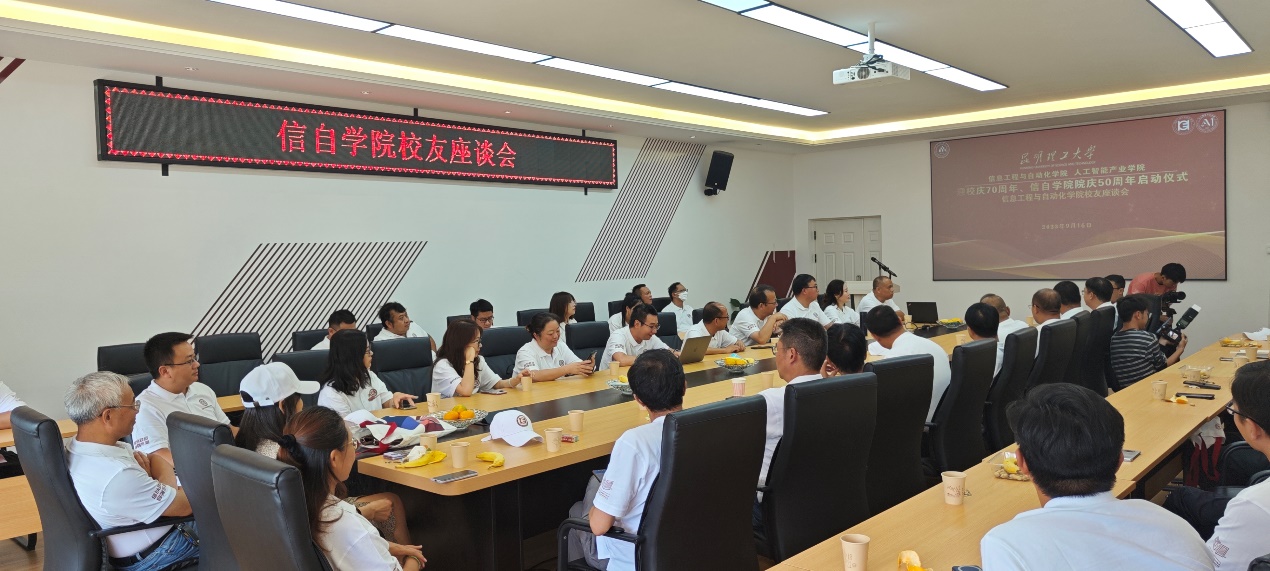 组织召开了迎学校70周年及学院50周年庆座谈会,院班子成员和30余名信自校友代表受邀出席。