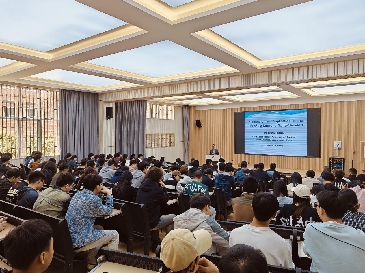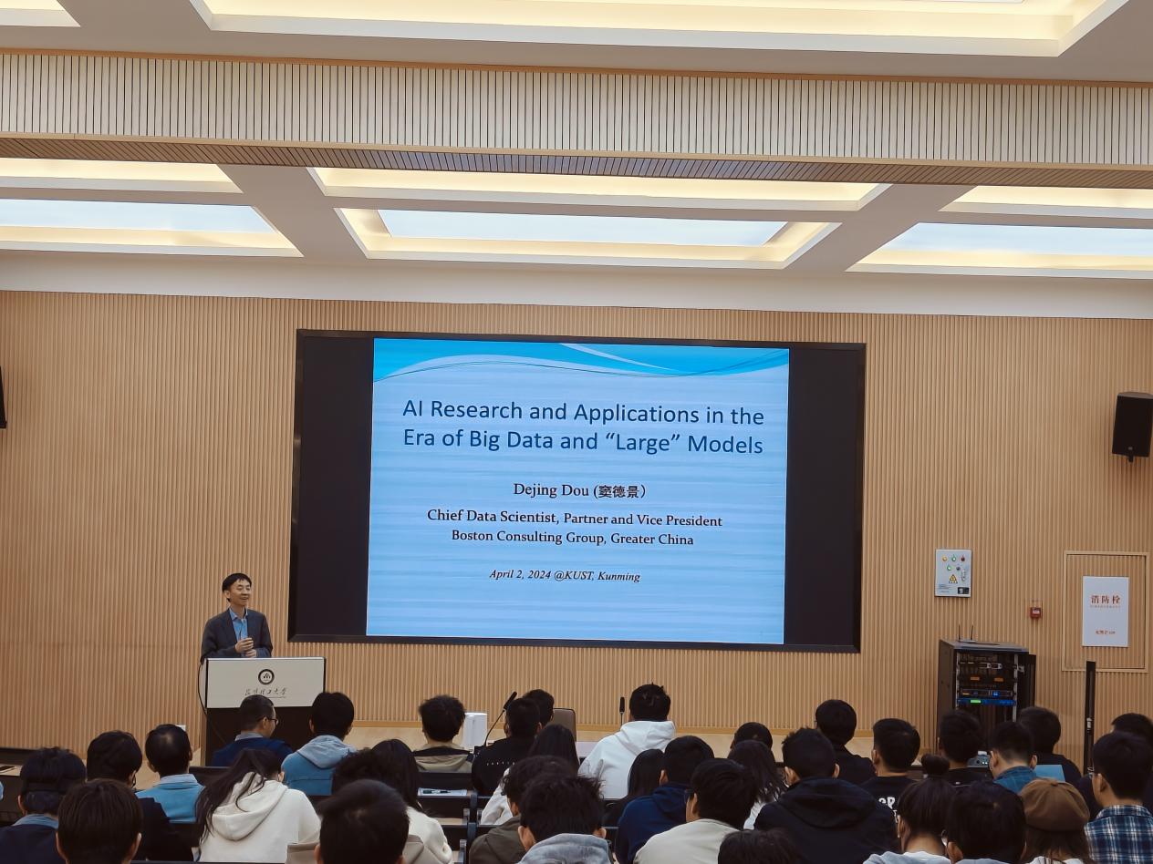 “致远大讲堂”邀请波士顿咨询合伙人、副总裁窦得景教授为昆工师生作关于“大数据和大模型时代的AI研究和应用”学术讲座。本次讲座在计算机重点实验室100报告厅进行,色花堂