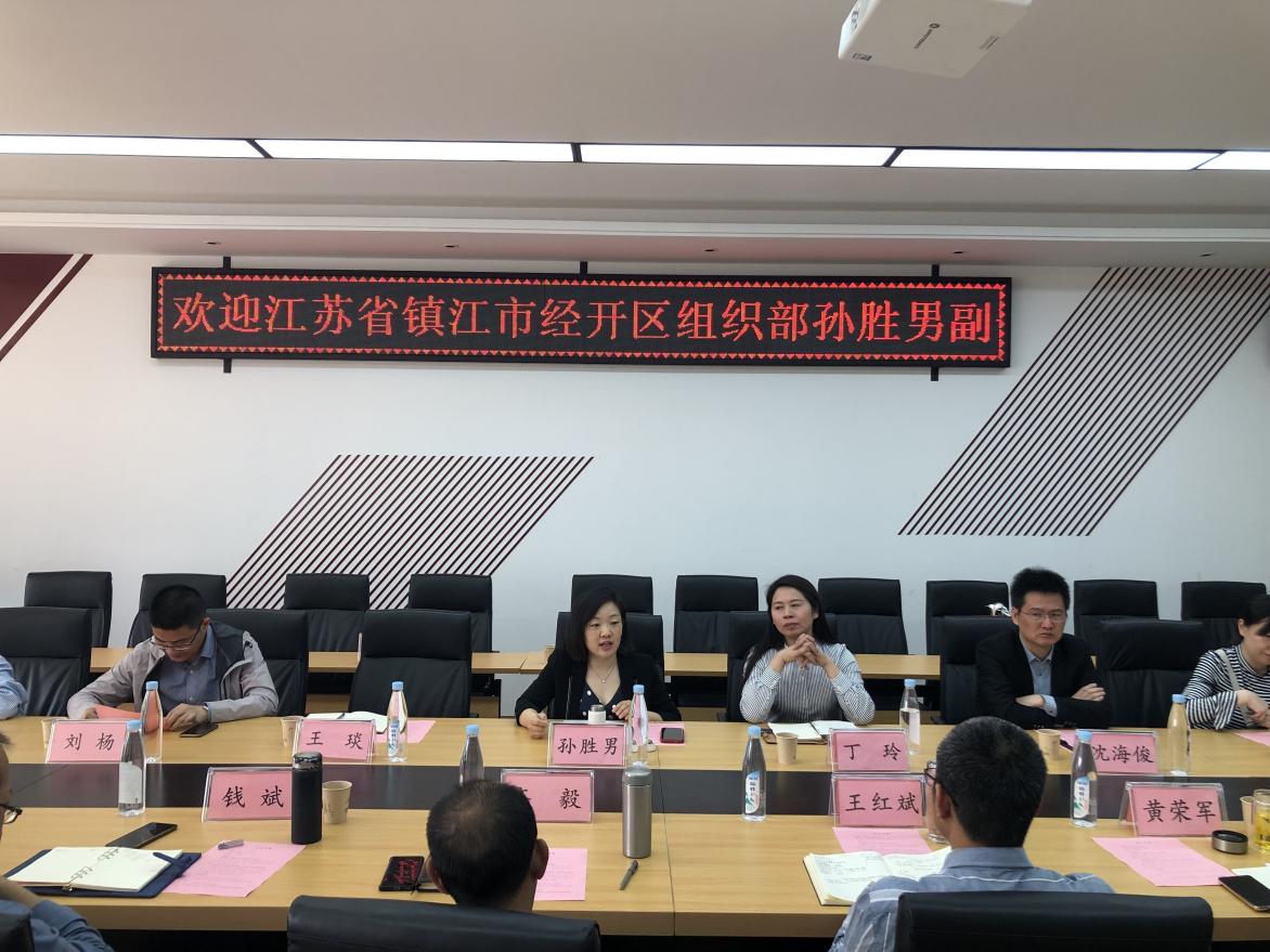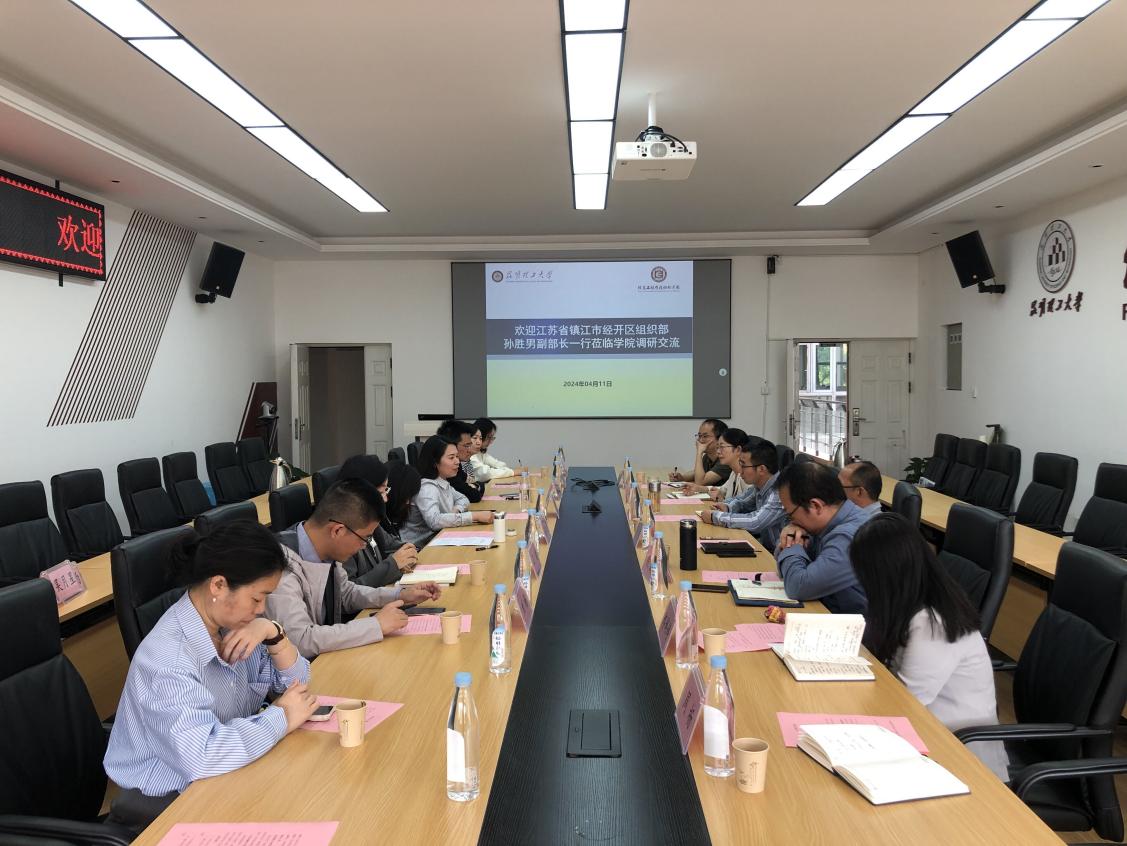 2024年4月11日上午,江苏省镇江市经开区委组织部孙胜男副部长一行莅临学院调研交流,学院党政班子成员参加座谈。