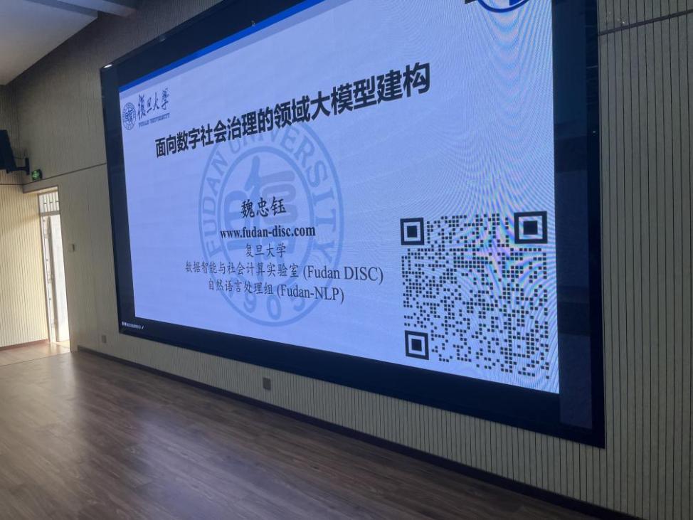 魏忠副教授带来了题为“面向数字社会治理的领域大模型建构”的报告。数字社会治理面向智能医疗、智慧司法、数字政府等场景,以大数据为基础,探究社会运行机制,设计人机协同的辅助决策方案。传统的方法遵循数据标注、算法设计和模型训练的流程,面向不同的场景进行智能化流程的设计,存在场景数据利用不充分,模型缺乏复用性和落地系统交互不足的问题。大语言模型的兴起,给数字社会治理提供了新的机会。报告介绍了其团队面向社会治理不同场景推出的微调领域大模型,并介绍了基于大模型完成网络社会运动模拟的工作。