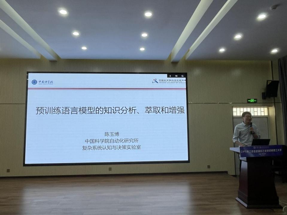 陈玉博副研究员报告主题是“预训练语言模型中的知识分析、萃取与增强”。近年来,大规模预训练语言模型在知识密集型的自然语言处理任务上取得了令人瞩目的进步。这似乎表明,预训练语言模型能够自发地从语料中学习大量知识,并隐式地保存在参数之中。然而,这一现象的背后机理仍然萦绕着许多谜团。语言模型究竟掌握了哪些知识,如何提取和利用这些知识,如何用外部知识弥补模型不足,这些问题都亟待进一步探索。报告重点介绍了预训练语言模型知识分析、知识萃取、知识增强等领域的基础知识和近期研究进展。