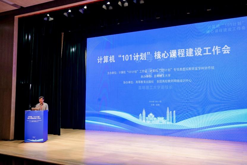 承办,高等教育出版社、全国高校教师网络培训中心协办。会议采用线上线下结合的方式,“101计划”核心课程负责人及课程组成员、“101计划”教材主编及编写团队成员、“101计划”教材试点应用项目负责人及教学团队教师、计算机类基础学科拔尖学生培养基地建设高校教师、各高等学校计算机类专业负责人及核心课程教师等350余人现场参会,6日上午全体会议通过全国高校教师网络培训中心、高等教育出版社视频号等渠道同步直播,线上观看超过1.8万人次。