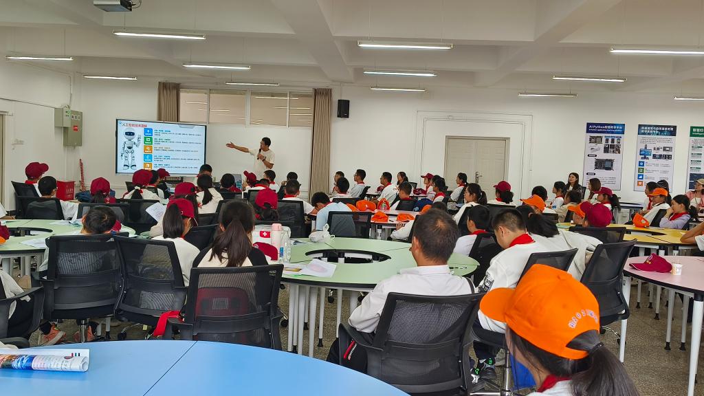 在研学过程中,实验中心教师薛继良为学子们带来了题为“智行天下,点亮未来——人工智能的创新应用”的讲座,讲述了人工智能的发展历史与前景、机遇与挑战。此外,学子们参观了人工智能综合实训室,在专业老师指导下,他们亲自体验了无人驾驶、智慧停车等系统,这一环节不仅锻炼了学子们的动手能力,也让他们感受到了科技的魅力,对人工智能产生了浓厚的兴趣。