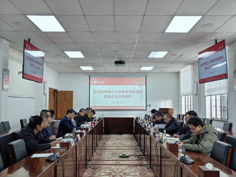 调研会上,王红斌院长对云南无线电有限公司的热情接待表示感谢,并介绍了学院的发展历程、学科特色及近年来的科研成果。云南无线电有限公司董事长禹海滨也详细介绍公司的基本情况、主营业务及技术优势。同时,双方就企业人才需求和科学研究等方面也进行了深入的交流和探讨。