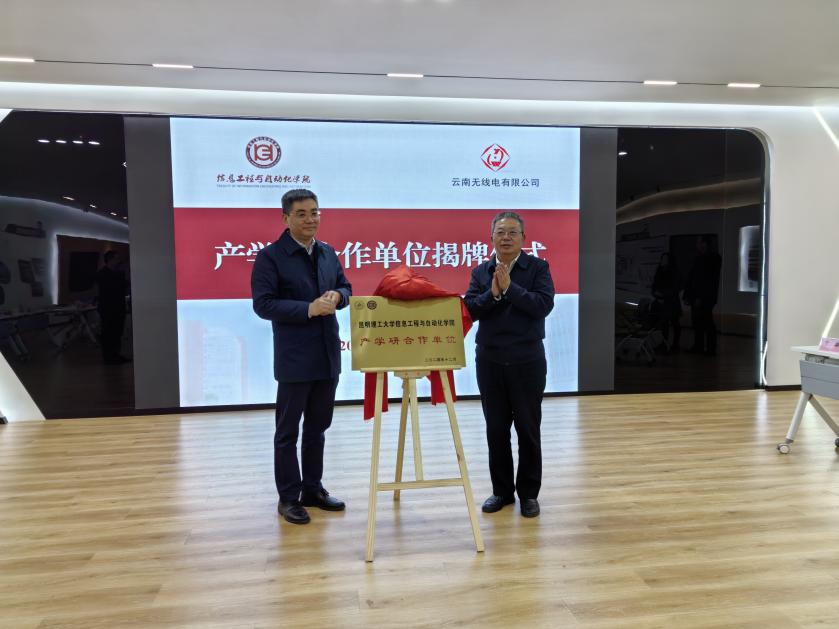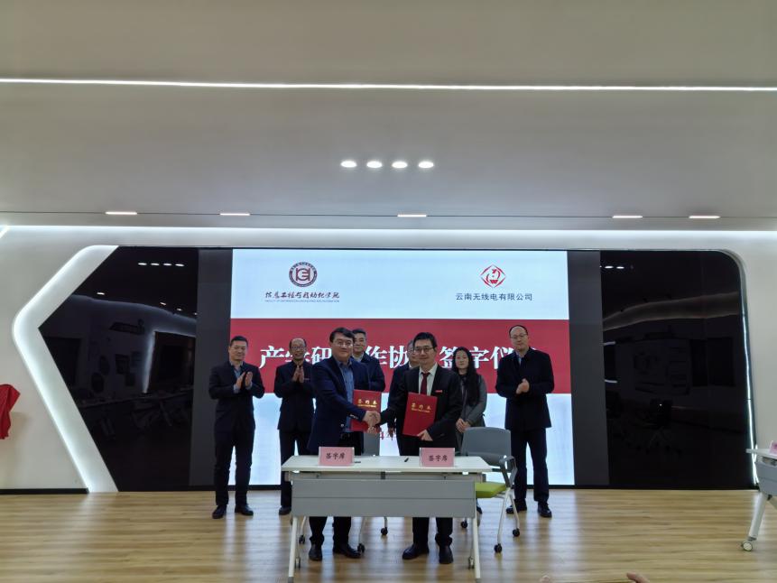 和云南无线电有限公司签订产学研合作框架协议,并举行了产学研合作单位和实习实训基地的揭牌仪式,这标志着为更进一步深化校企合作、产教融合奠定了良好的基础,校企双方合作迈入了一个崭新的阶段。