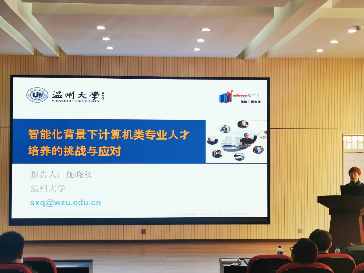 桂小林教授作了题为“生成式人工智能(AIGC)对大学教育变革带来的机遇与挑战”的特邀报告,从AIGC应用场景出发,探讨AIGC时代的大学计算机课程改革思路、面向产出的课程教学方法,分析AIGC对大学学习可能带来的负面冲击和挑战。施晓秋教授作了题为“智能化背景下计算机类专业人才培养的挑战与应对”的特邀报告,指出地方院校需遵循“学生中心、产出导向、持续改进”的原则,构建动态适应、可持续演进的专业人才培养体系,从而有效应对智能化变革带来的专业教育挑战。