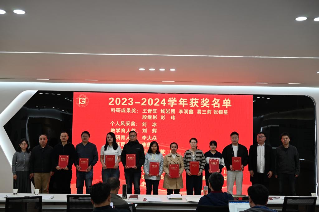 在信自楼126会议室召开2023-2024学年纳轩育才奖教基金工作总结交流会,学院党政班子成员、获奖教师代表、全体班主任辅导员、新进教师共计60人参加了会议。