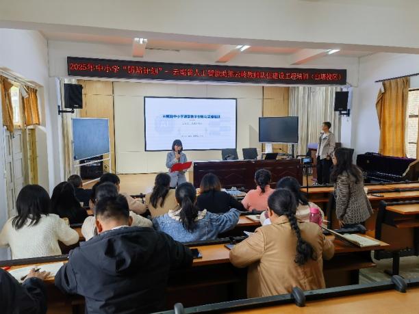 承办,依托云南省人工智能重点实验室优质师资,组建由教授、博士、学科教学专家与一线骨干教师构成的专业团队,分赴各地开展送教入校,以整校推进、精准赋能、课堂变革为核心,通过专题讲授、分组研讨、互动交流、上机实操等多种形式,为全省多地教师带来一场贴近教学、务实高效的AI教育赋能行动。