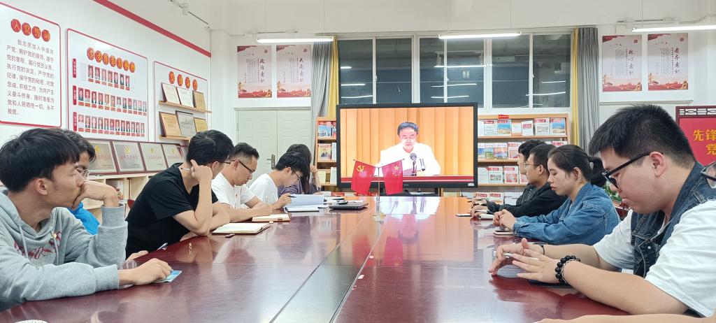在信自楼235党员活动室组织师生党员集中学习观看贯彻习近平总书记“七一”重要讲话精神宣讲报告会,学院主要党政领导,24个党支部,共计700余名党员观看了系列专题宣讲报告。
