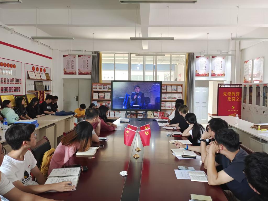 苏蕊同志带领大家学习新修订的《中国共产党章程》,并且带领大家观看“建党百年,老党员重温入党誓词”,然后马金晶同志对与会党员同志进行毕业生文明离校教育,督促各位毕业生在校期间遵守学校规定,做到文明离校、安全离校。并且带领全体党员重温入党誓词,不忘初心,牢记使命。最后彭诗援等同志向与会党员分享有关就业、考研等相关经验。