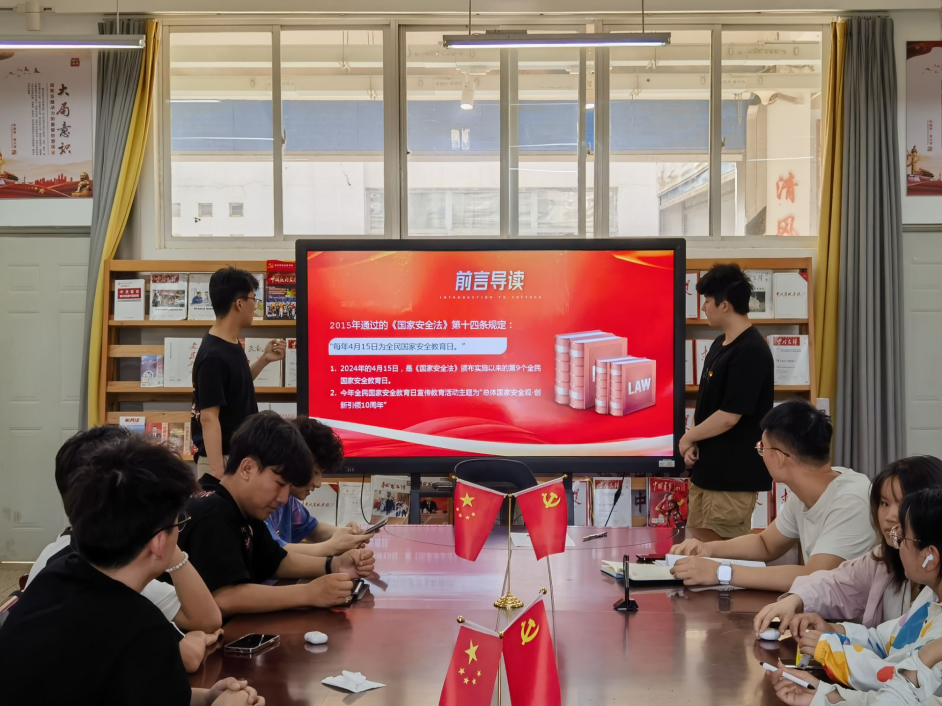 活动第一阶段,支部书记万松同志结合“4·15”全民国家安全教育日宣传教育活动,组织党员深入学习总体国家安全观的新理念新要求、国家安全相关法律法规,典型警示案例分析、保密意识常识教育等活动,推动国家安全宣传教育广泛深入普及,进一步增强广大师生国家安全意识。