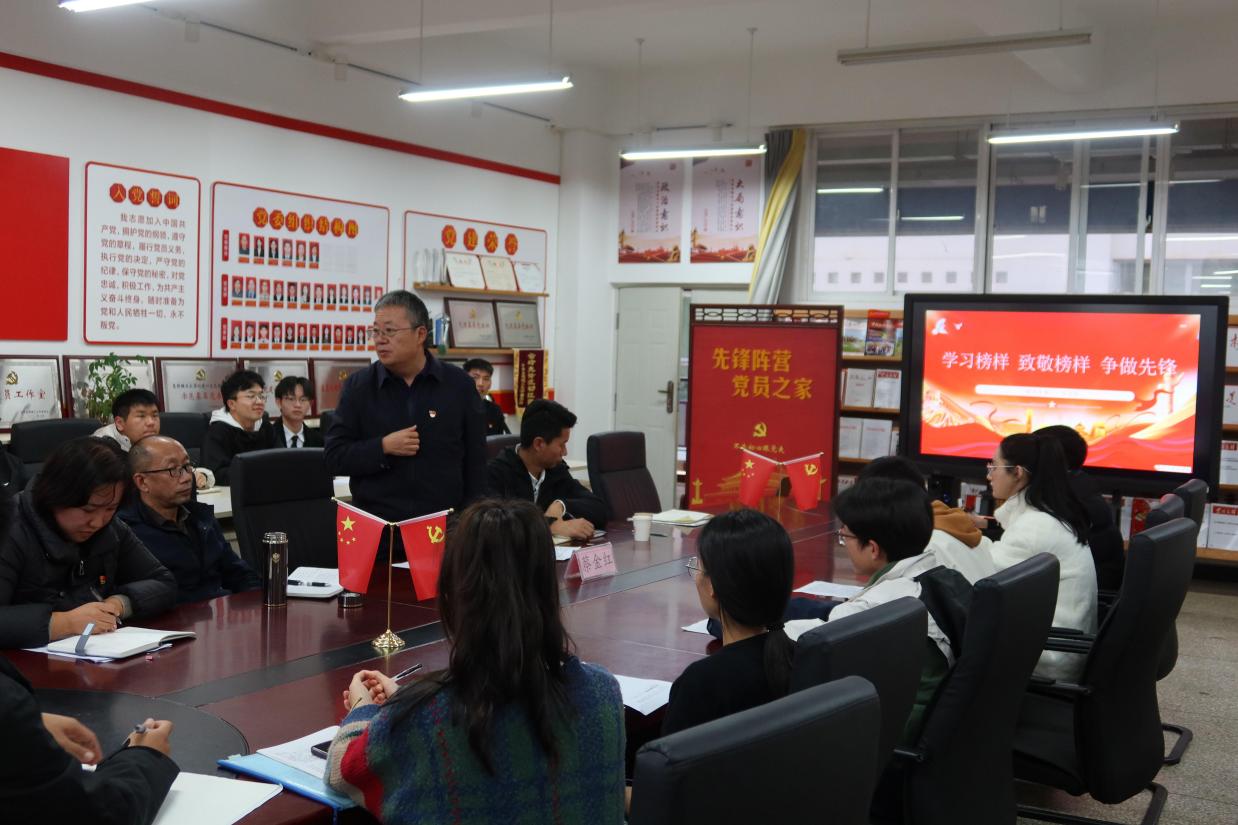 研究生第十一支部在信自楼235会议室组织开展了以“学习榜样、致敬榜样、争做先锋”为主题的党日活动,联系支部的校党委副书记蔡金红同志到场参加并指导支部工作。