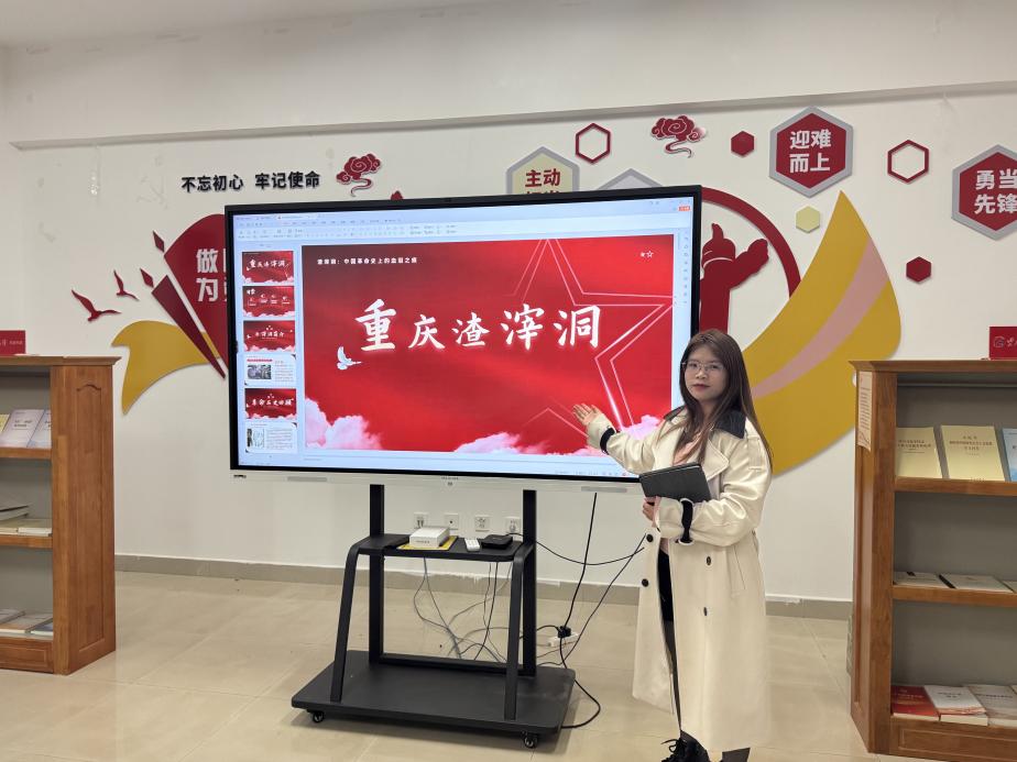 活动中,支部全体党员从“视、听、讲、读”四个维度出发,以红色歌曲《风雨中出发》、红色故事《重庆渣滓洞》、红色诗词《伟大的生命》为载体,对中国共产党人精神谱系中所蕴含的伟大精神进行了深入的学习和探讨。负责本次活动的学生党员在每个维度学习结束后谈及了自己的学习心得: