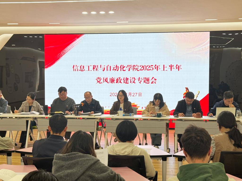 在学院126会议室召开2025年上半年党风廉政专题会,学院班子成员、党委委员、科室负责人、党支部书记共计40余人参会,会议由学院纪委书记周鹭主持。