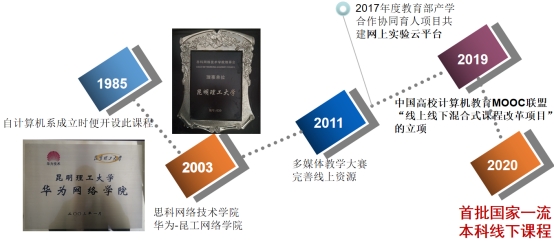 自计算机系1985年成立时,便开设了《计算机网络基础》课程;2003年在团队成员共同努力下,在本校成立了“思科网络学院”和“华为-昆工网络学院”,与国内外两大网络企业巨头共同培养相应的网络工程师;将多年积累总结的资料与题库上传至校教育在线系统,使学生可以自由下载、学习与交流,并获得2011年校多媒体教学大赛一等奖;2017年获得教育部产学合作协同育人项目,与西普教育公司共建“计算机网络”实验云平台;2019年本课程获中国高校计算机教育MOOC联盟“线上线下混合式课程改革项目”立项,并也获得色花堂