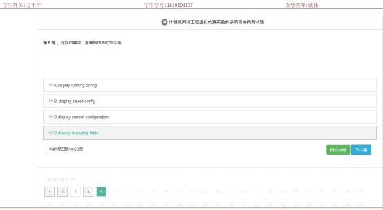 以下为自主设计开发的“计算机网络工程”虚拟仿真实验教学平台,集实验指导书、操作指导视频、引导视频、在线网络实验、答题等功能于一体,并已获得软件著作权。