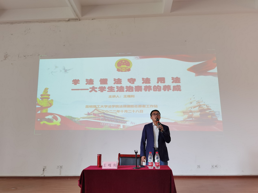 法学院副教授王嘎利为全体学生做了一场《学法懂法守法用法——大学生法治素养的养成》的普法教育讲座。