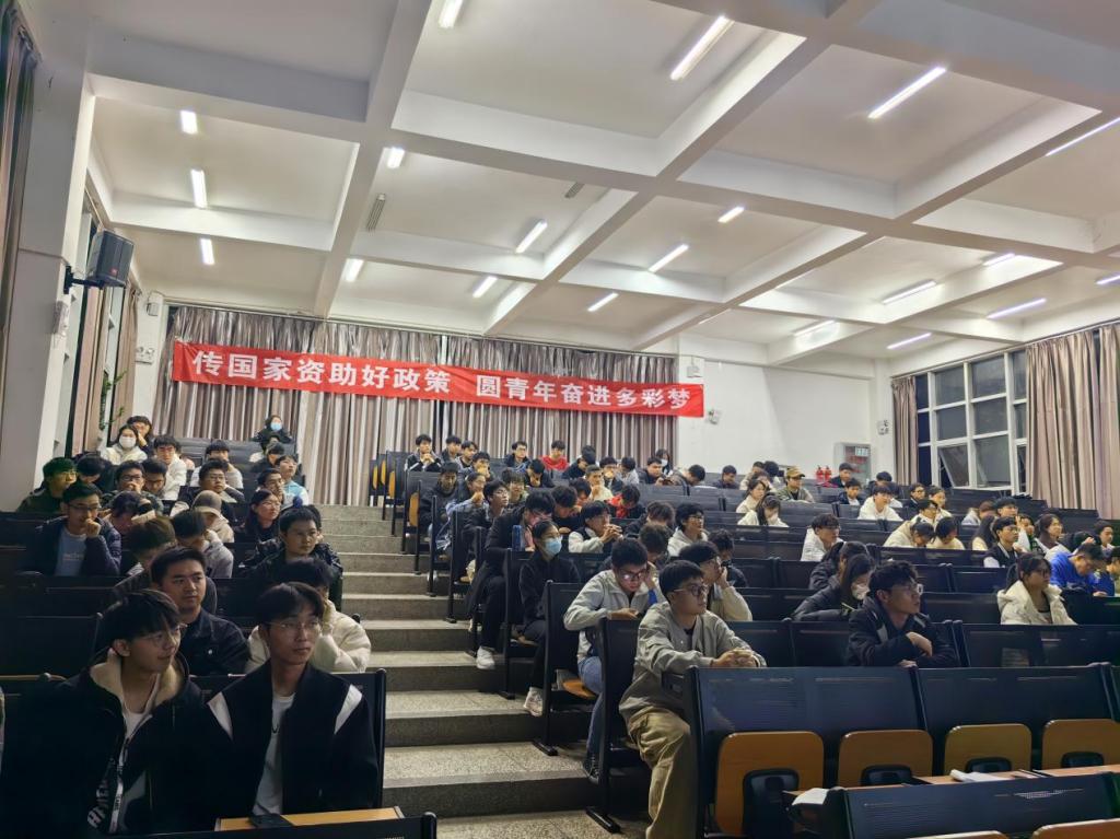 在信自100报告厅召开12月资助联络员例会暨征兵政策宣讲会。本次会议由刘冰老师主持,各班资助联络员及大四贫困生150余名同学参会。