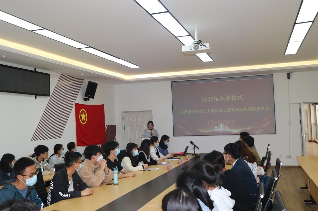 在信自楼237会议室举行2022年新团员入团宣誓仪式。本次入团仪式由院团委学生会谭蕊同学主持,学院党委副书记周鹭、院团委老师马金晶、院团委老师万松以及部分团支部书记、团员代表及新团员参加。