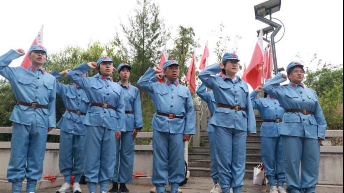 在当地村民的带领下,团队成员先后参观了六甲之战纪念塔、红军长征柯渡纪念馆、丹桂红军村。在六甲之战纪念塔下,全体师生身着红军装,深切缅怀革命先烈,举行祭奠活动,并且重温入团誓词;在红军长征柯渡纪念馆通过图片、实物、视频的展示以及讲解员的深动讲述,队员们深刻了解到红军长征过云南时发生的感人故事;在丹桂红军村,同学们通过走访调研发放了百余份问卷,为探索出一条智慧城市视域下云南红色文化旅游知识图谱的建设之路提供数据支撑。