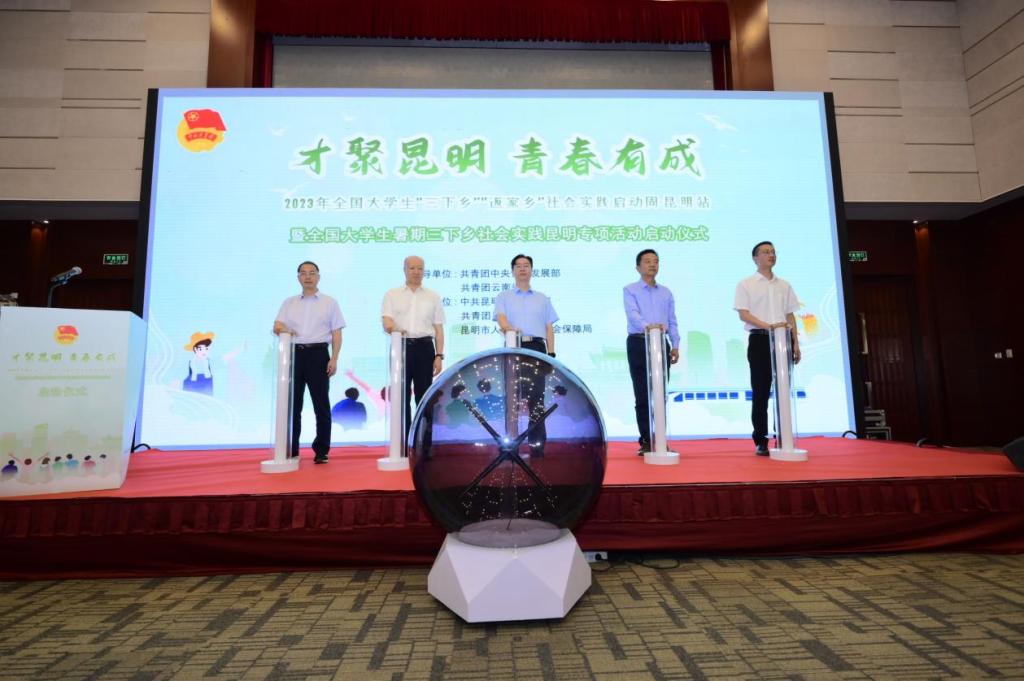 2023年7月18日,在团中央青发部指导下,由市委组织部、团市委、市人社局主办的2023年全国大学生“三下乡”“返家乡”社会实践启动周·昆明站暨“才聚昆明 青春有成”全国大中专学生暑期“三下乡”社会实践昆明专项活动启动仪式在昆明会堂举行,色花堂