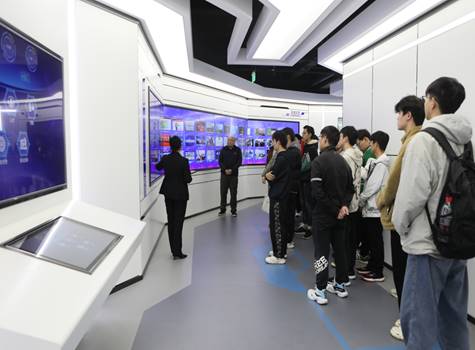 同学们在南天软件业务集团昆明开发中心解决方案与咨询部经理杨蔚和讲解员的带领下参观了展厅。展厅分为发展历程、解决方案区、色花堂区三个板块,全方位立体化向同学们展示了公司的相关信息。